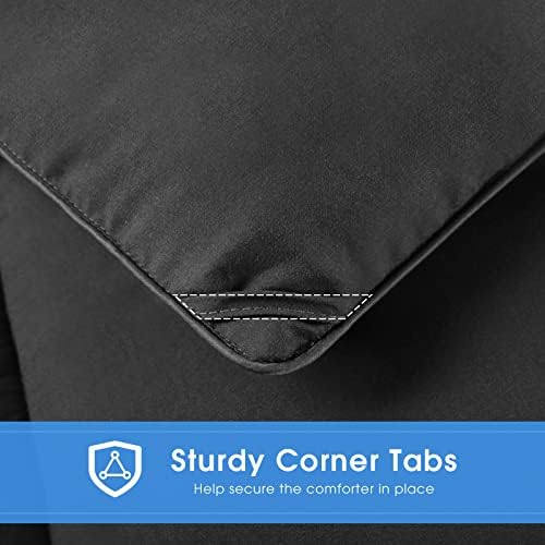 【5 STAR HOTEL QUALITY -EXCELLENT QUILTING】Our durable comforter is made of a whole piece of poly-fill which is more durable than most similar comforters on the market and features three-dimensional box stitching to prevent the filling from bunching. Additionally, the double-needle quilting and fine stitching ensure that there will be no filling leakage. To secure your comforter cover in place, there are 4 corner tabs located on the outside of the comforter.