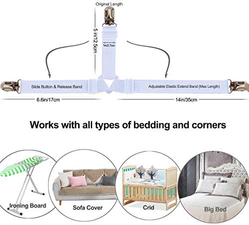 ❤The sheet straps clip fits with fitted sheet and flat sheet for size Twin, Twin XL, Full, Full XL, Queen, King & even up to California King sheets., Adjustable length allows desired tension.