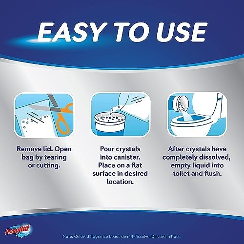 To use, remove lid and pour crystals from bag into the top tray of the canister. Once odor absorbing crystals have dissolved, discard water from canister and refill for longer lasting freshness.