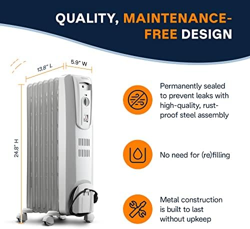 De’Longhi Oil-Filled Radiator Space Heater, Full Room Quiet 1500W, Adjustable