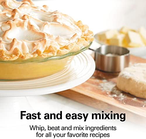Whip up an airy meringue or decadent cake with the Hamilton Beach hand mixer. This versatile mixer is your go-to appliance for mixing, whisking, and folding with 250W of peak power. A built-in bowl rest makes it easier to set the mixer down when adding ingredients. The mixer has six speeds, including quick burst functions for additional power at any speed. The Hamilton Beach hand mixer is not just about performance, it’s also designed for easy storage. A convenient snap-on case keeps attachments together, so you don’t have to search for them each time you need them. Includes traditional beaters and whisk.Snap-On Storage Case No more digging through the drawers to find your mixer attachments. A storage case perfectly fits all the attachments and cord. It then snaps onto the mixer, keeping everything together in one place.Snap-On Storage Case: No more digging through the drawers to find your mixer attachments. A storage case perfectly fits all the attachments and cord. It then snaps onto the mixer, keeping everything together in one place.