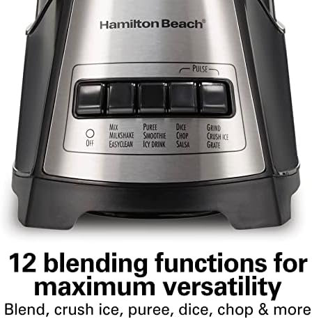 12 BLENDING FUNCTIONS FOR MAXIMUM VERSATILITY: This multi-function blender has 12 functions controlled by 5 simple buttons on the easy-to-read control panel; It blends and crushes ice for smoothies and milkshakes, purees, dices, chops and more