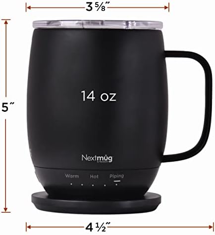 ALWAYS THE PERFECT TEMPERATURE – The Nextmug will keep your hot coffee, tea or preferred beverage at the perfect temperature wherever you are. Simply select Warm (130°), Hot (140°), or Piping (150°) and enjoy for hours.