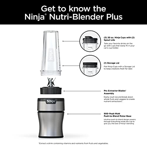 Ninja BN301 Nutri-Blender Plus Compact Personal Blender, 900-Peak-Watt Motor