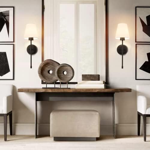 ✅【Durable Premium Material】Our set of two slim wall sconces features an elegant long column stand arm and white fabric shade, made from high-quality materials that won’t easily oxidize or fade. The soft glow of the light protects your eyes and creates a warm, relaxing atmosphere.
